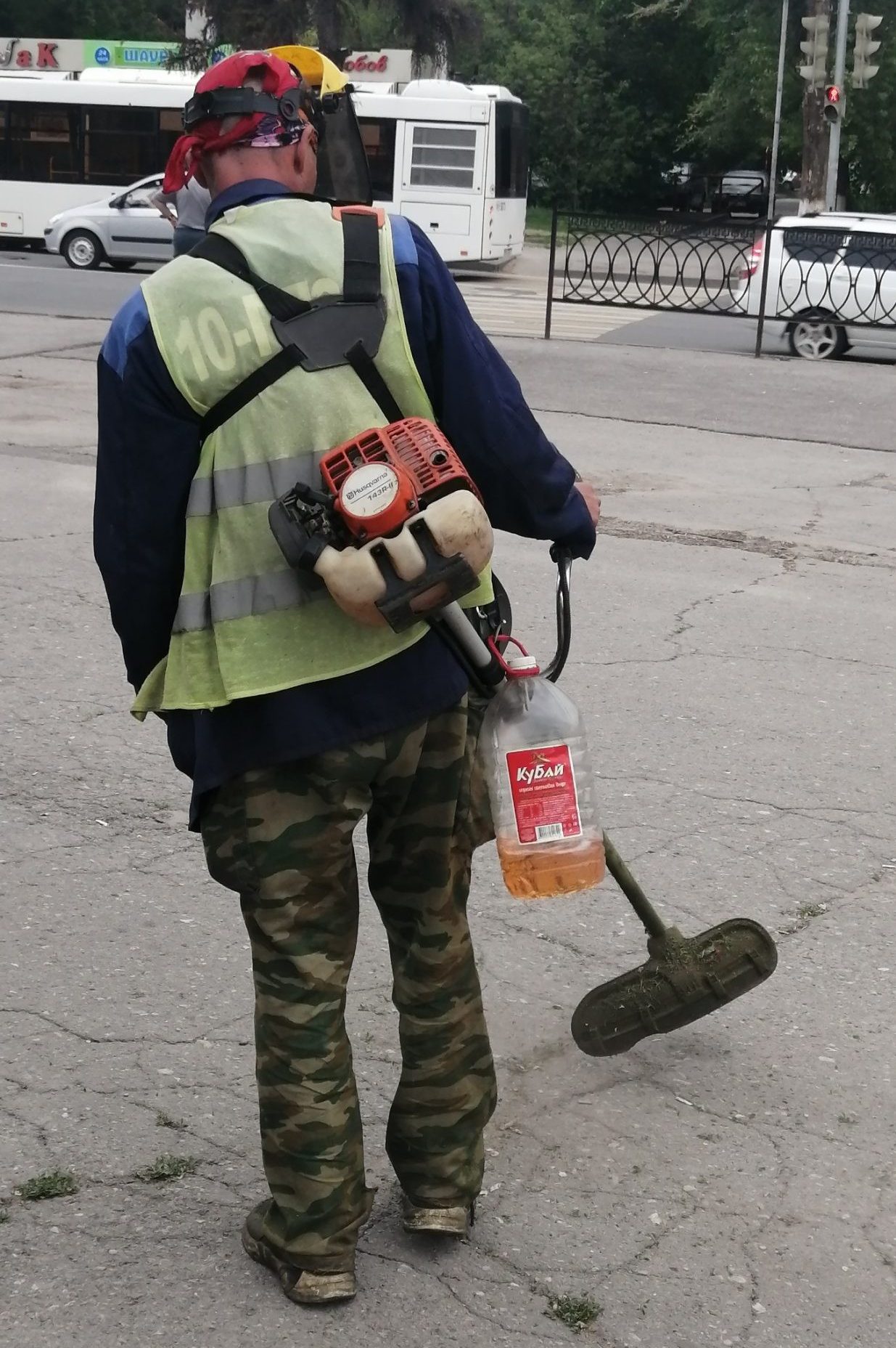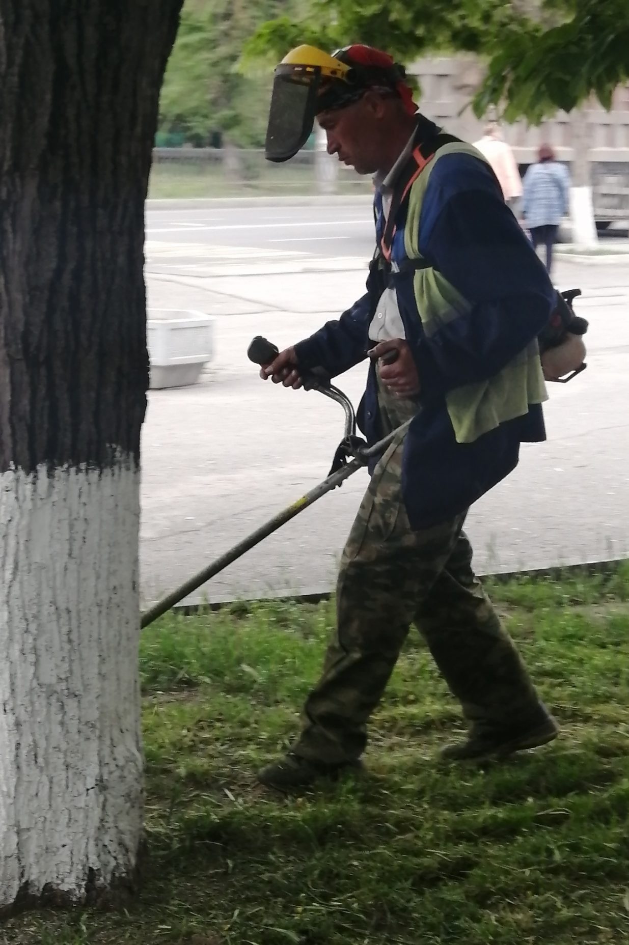 Сегодня в Ростове-на-Дону, а именно в Советском районе, рабочие орудовали мобильными газонокосилками. Группами по три человека мужчины косили траву на газонах вдоль улицы Малиновского. Вероятно, труженики — сотрудники районной коммунальной службы по благоустройству. Впрочем, одеты они были в специальную униформу, включающую полную защиту головы. Глядя на такую экипировку, одни прохожие даже вспомнили известный мультфильм «Охотники за приведениями» — настолько пестро смотрится такая «рабочка».