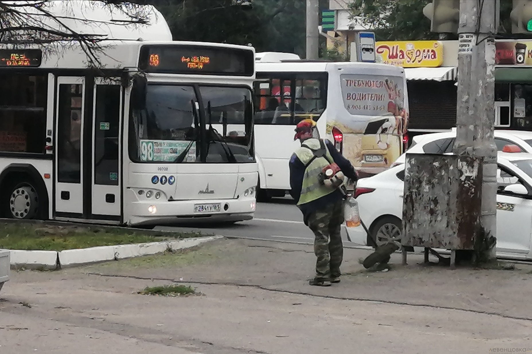 Вероятно, бригаде ставилась задача скосить траву на газонах, а также вырвать растительность, которая пробивается сквозь тротуар. И, надо сказать, коммунальщики с этим справились на ура — они тщательно косили траву и даже просто наблюдая за их работой было видно, что сделать Ростов чище и краше, они действительно хотят. Пусть даже не все из них, возможно, являются коренными ростовчанами.